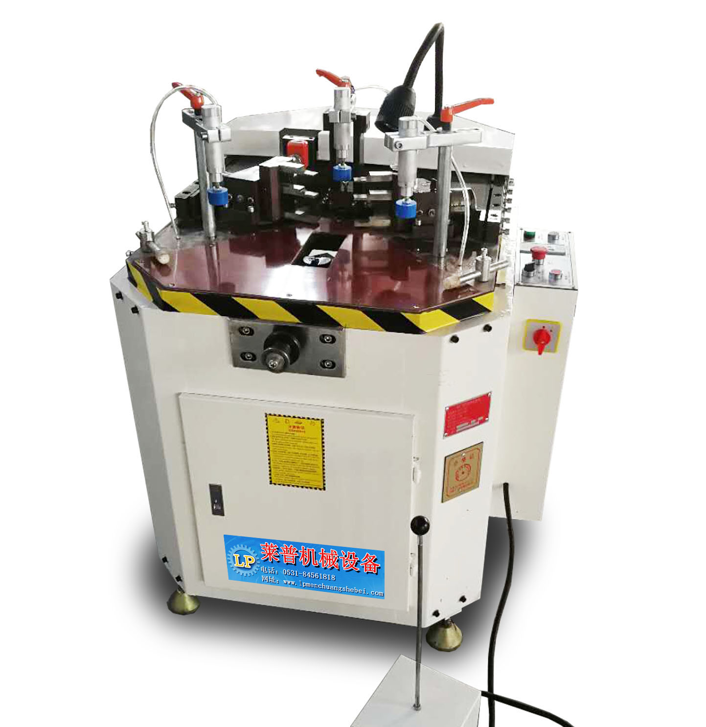 输入电源 380V 50Hz 输入功率 1.5kw 额定油压 20Mpa 工作气压 0.5~0.8MPa 耗气量 2L/min 油箱容量 30L 加工型材宽度 ≤140mm 外形尺寸 1300×1200×1300mm